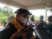 Rektor Universitas Sriwijaya (Unsri) Prof. Dr. Ir. H. Anis Saggaf, MSCE saat diwawancarai di aula Gedung Laboratorium FKIP Unsri, Senin (8/11/2021).
