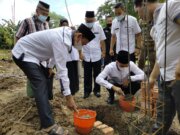 MUBA, SentralPost - Camat Kecamatan Sanga Desa Hendrik, SH MSi melakukan peletakan batu pertama, tanda dimulainya pembangunan Masjid...