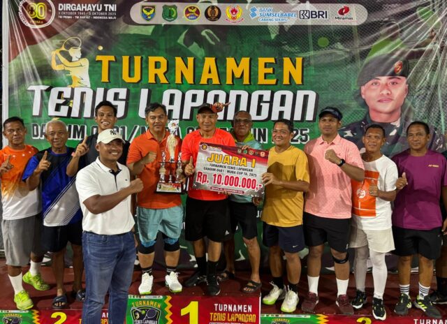 Muara Enim, Sentralpost.co, – Tim Persatuan Tenis Lapangan (Pelti) Kota Prabumulih Sumatera Selatan, berhasil meraih juara dalam Turnamen tenis lapangan memperebutkan Piala Dandim 0401 /Muba Cup Tahun 2025.