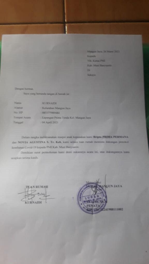 “Saya sangat kecewa dengan keruh Palang Merah Indonesia Muba yang tidak proaktip dalam menjalankan tugas sosialnya. Sejak 10 hari H – 1 saya mengajukan Surat permohonan pinjam pakai peralatan dan petugas PMI untuk mentaati pertokes acara Resepsi pada Minggu (4/4/2021) dan surat itu saya sendiri yang mengantar lansung ke sekretariat PMI dan sebelumnya saya kirim lewat pesan singkat WhatsApp pihak PMI namun sampai pada hari H petugas dan peralatan dari PMI Muba tidak ada yang datang sementara H- 3 dan 2 juga sudah saya telpon secara pribadi ke pihak PMI sampai acara selesai peralatan dan petugas PMI tidak ada yang nongol. atas nama warga kelurahan Mangun Jaya sangat Kecewa atas perilaku kru PMI Muba yang tidak proaktif menjalankan tugas sosial sebagai mana Nama Besar PMI Muba yang tersohor itu.” Ujar Kurnaidi dalam akun fecebook nya.